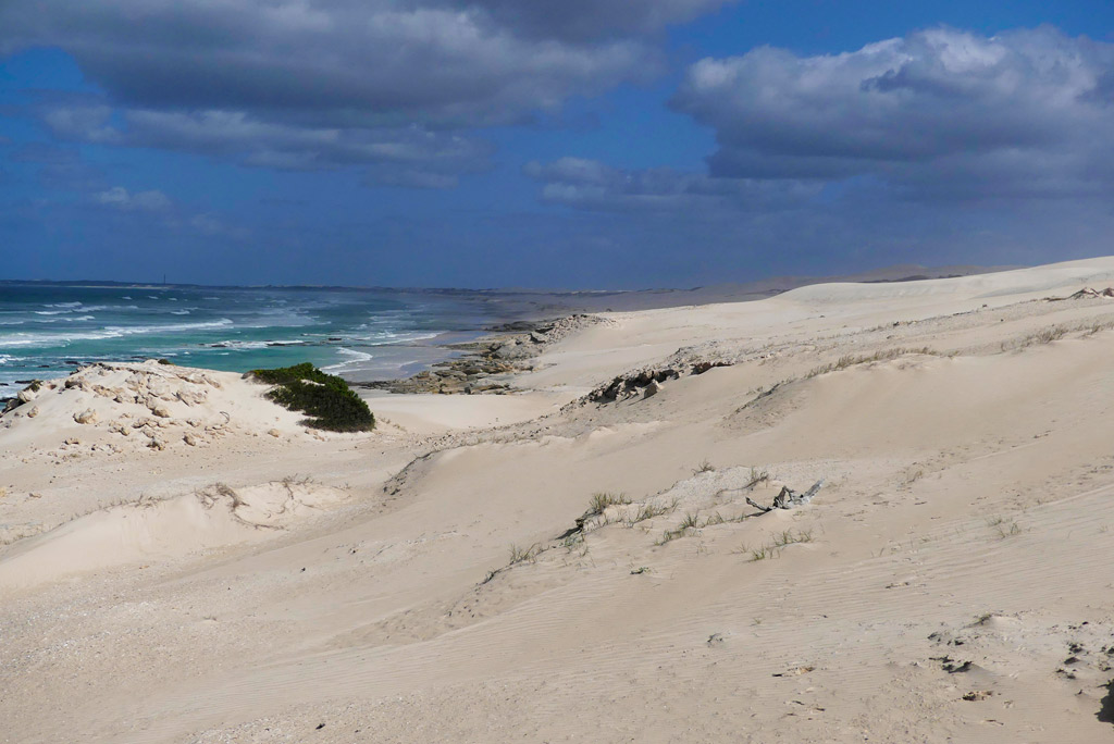 De Hoop es quizás unos de los espacios naturales mas bellos y exclusivos de Sudáfrica. La particularidad de su flora y fauna, junto con su asombroso paisaje, hacen de este parque una visita obligada. Es un parque relativamente pequeño de suaves y verdes colinas que acaban en él mar y de una riqueza destacable. La vegetación es arbustiva y contiene una de las mayores áreas de fynbos de Sudáfrica. La fauna también es especial, en tierra veremos herbívoros difíciles de encontrar en otros parques, como el bontebok, la Zebra de montaña, el eland o el grey rhebok. En el mar podemos ver delfines, orcas y con bastante facilidad ballenas. Pero es el paisaje del parque enterrándose suavemente en las blancas dunas junto al mar, lo que le da una belleza indiscutible.