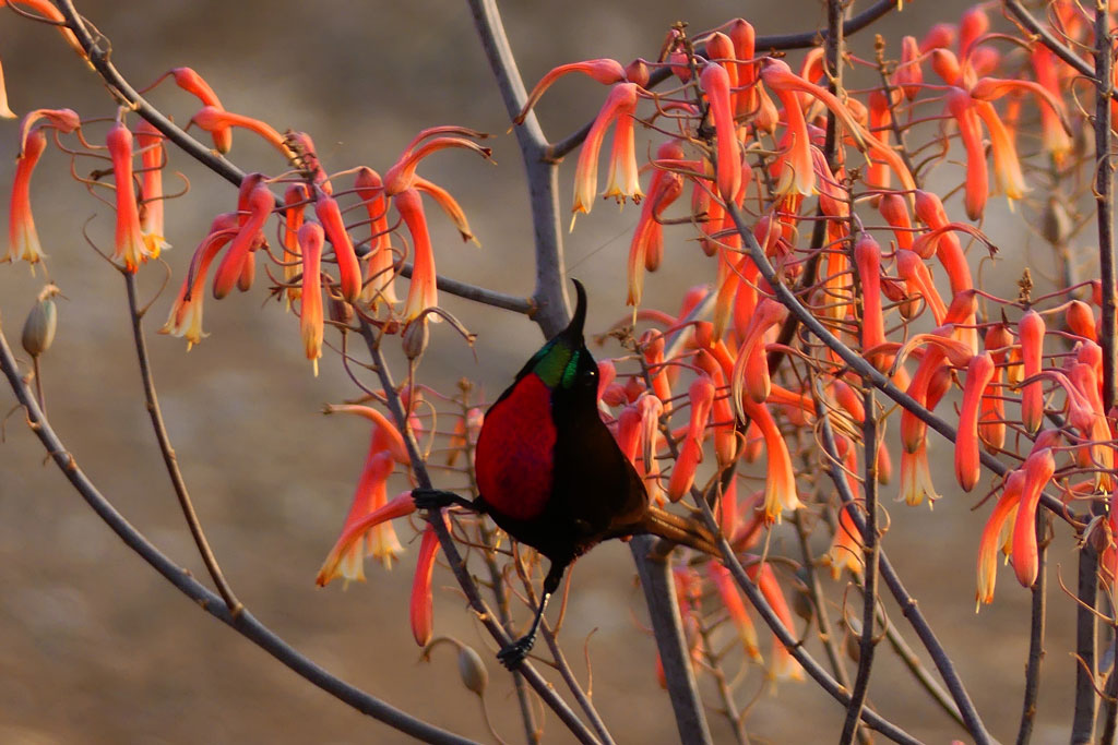 Hoy dejamos la reserva natural de De Hoop, maravillosa y exclusiva en todos los sentidos, quizás uno de los parques más interesantes de Sudáfrica. Después de dar una ultima vuelta por sus blancas dunas y disfrutar viendo pasar algún grupo de ballenas, dejamos este parque atrás y nos dirigimos hacia la famosa ruta jardín. Otro enclave especial del país por su desbordante naturaleza. Infinidad de estuarios, bahías, acantilados, playas, bosques y agua por todos lados. Hay muchos sitios donde parar, tendríamos para una semana, pero nos dirigimos a una pequeñísima localidad llamada Nature’s Valley, su nombre lo dice todo, un lujo de sitio donde buscar el Turaco, una rara ave exótica que habita estos litorales. Podremos caminar por senderos de costa o por el interior, cualquiera de ellos nos sorprenderá con increíbles imágenes. Otro sitio para recordar.